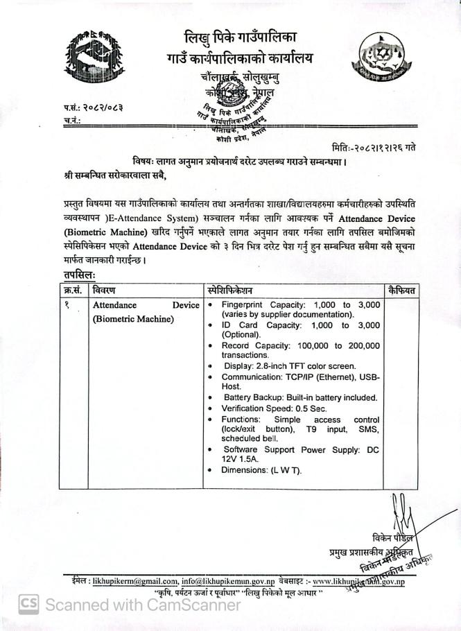 लागत अनुमान प्रयोजनार्थ दररेट पेश गर्ने सम्बन्धमा!!!
