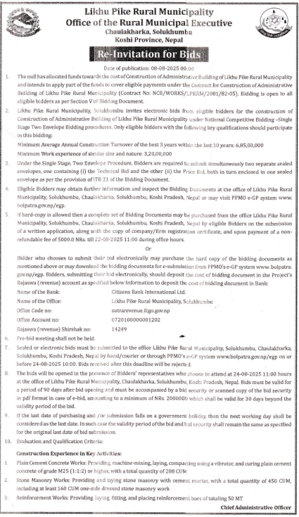 सार्वजनिक खरिद/बोलपत्र सम्बन्धी सूचना