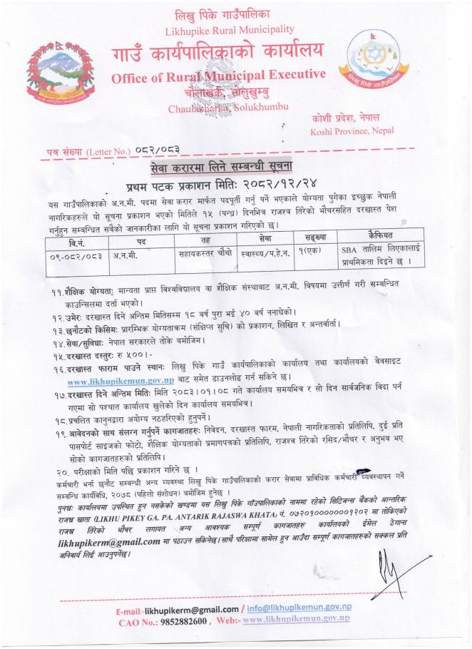 Home » सेवा करारमा लिने सम्बन्धी सूचना!!!