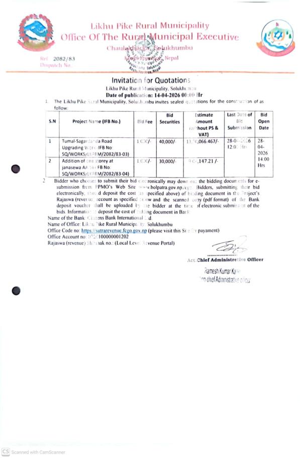 सार्वजनिक खरिद/बोलपत्र सम्बन्धी सूचना