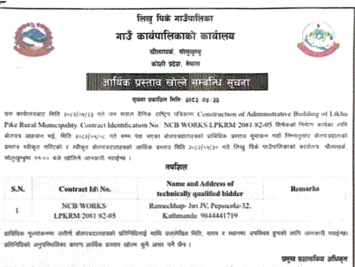 सार्वजनिक खरिद/बोलपत्र सम्बन्धी सूचना